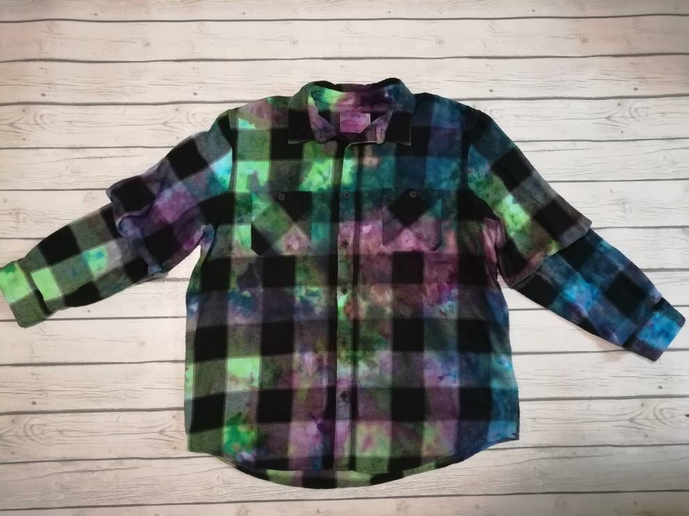 . 30Mar 4 2021 - This UNIQwares tie dye flannel is individually hand dyed by fiber artisans in our Kansas City studio in small batches. Mens size L can be worn as womens oversized top. All photos are actual and unfiltered.